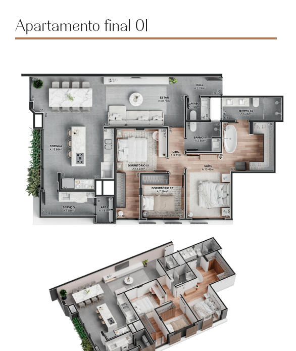 Área privativa: 136,78m²