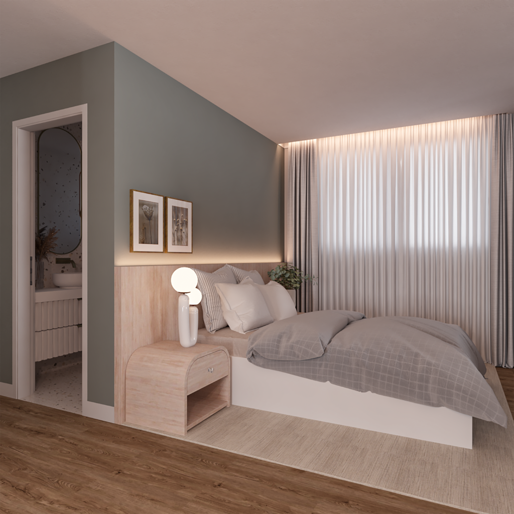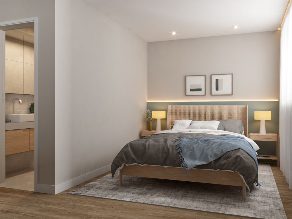 Piso porcelanato e laminado nas áreas íntimas