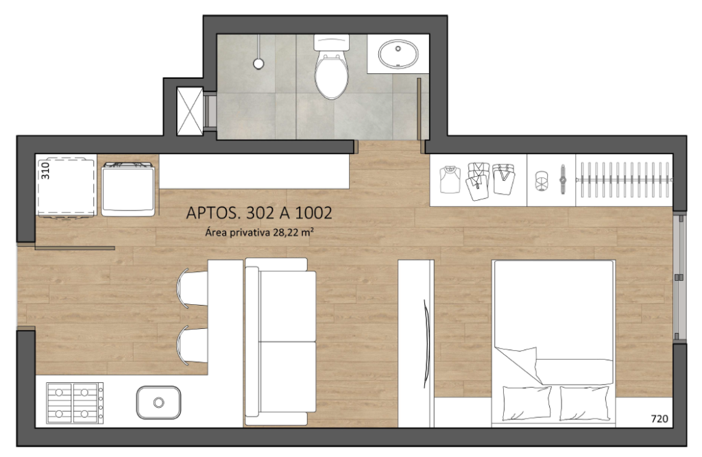 Área privativa: 28,22m²