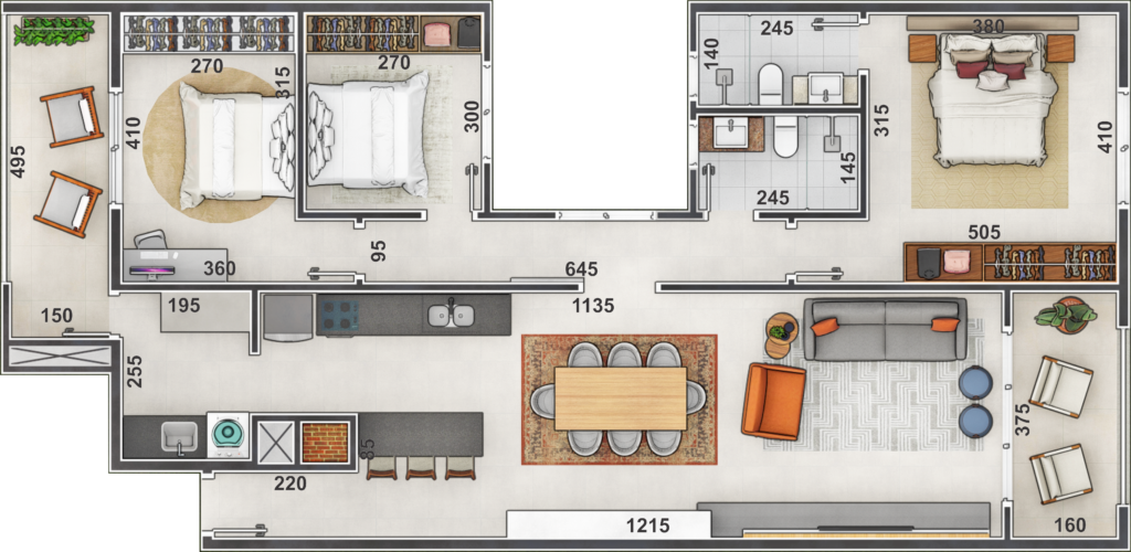 03 dormitórios, sendo um deles suíte, e outro com sacada