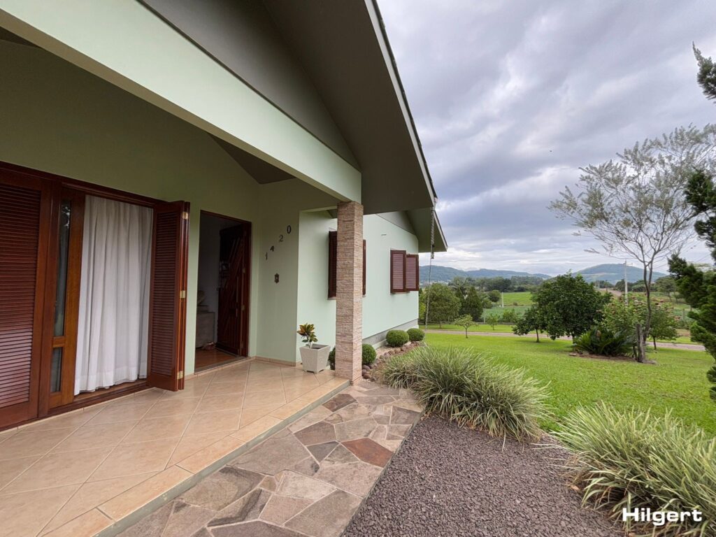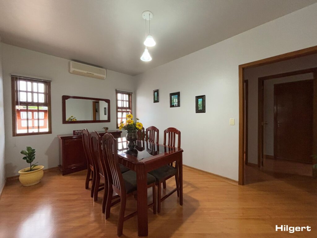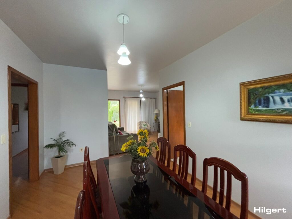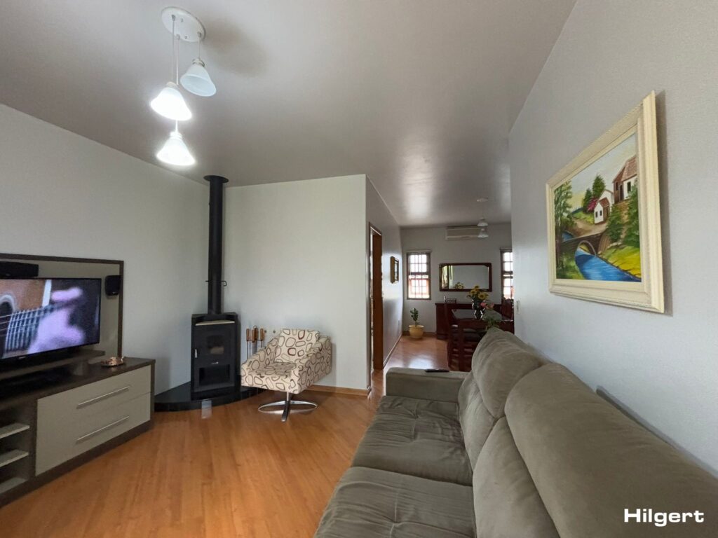 A casa é composta por três dormitórios espaçosos(um deles suíte), sala de estar com lareira, sala de jantar, cozinha, garagem fechada, churrasqueira, lavanderia ampla e um porão que pode ser transformado para várias finalidades (garagem, espaço de visitas, home-office, adega, etc). Piso laminado nos quartos e nas salas, esquadrias de madeira.