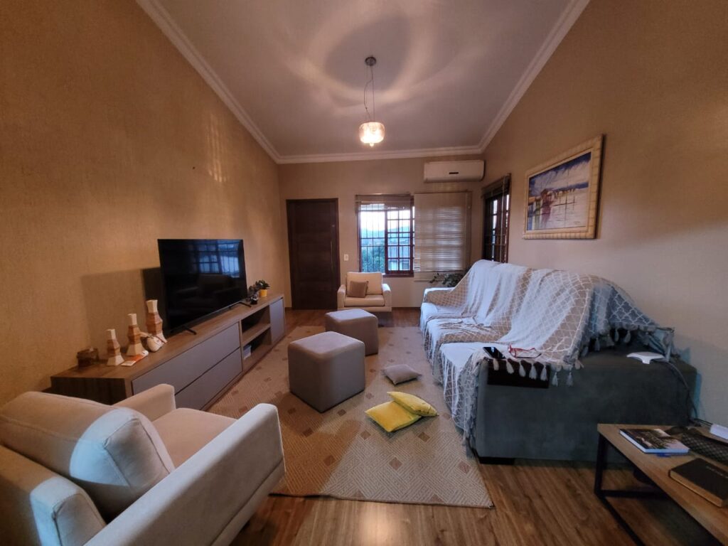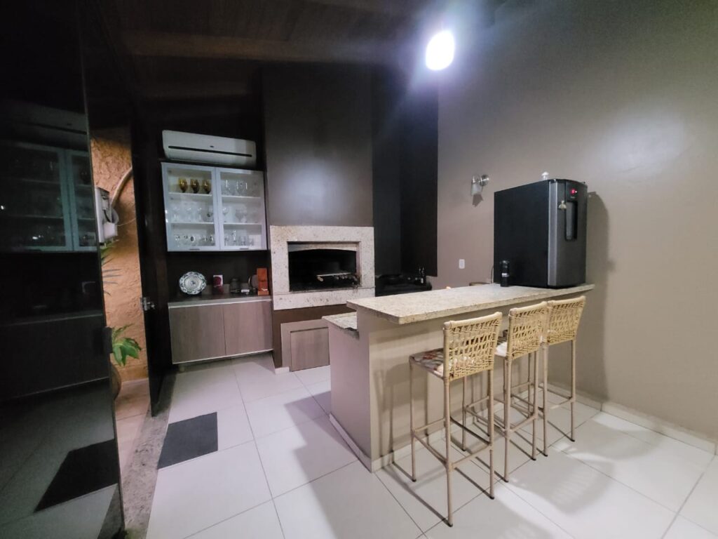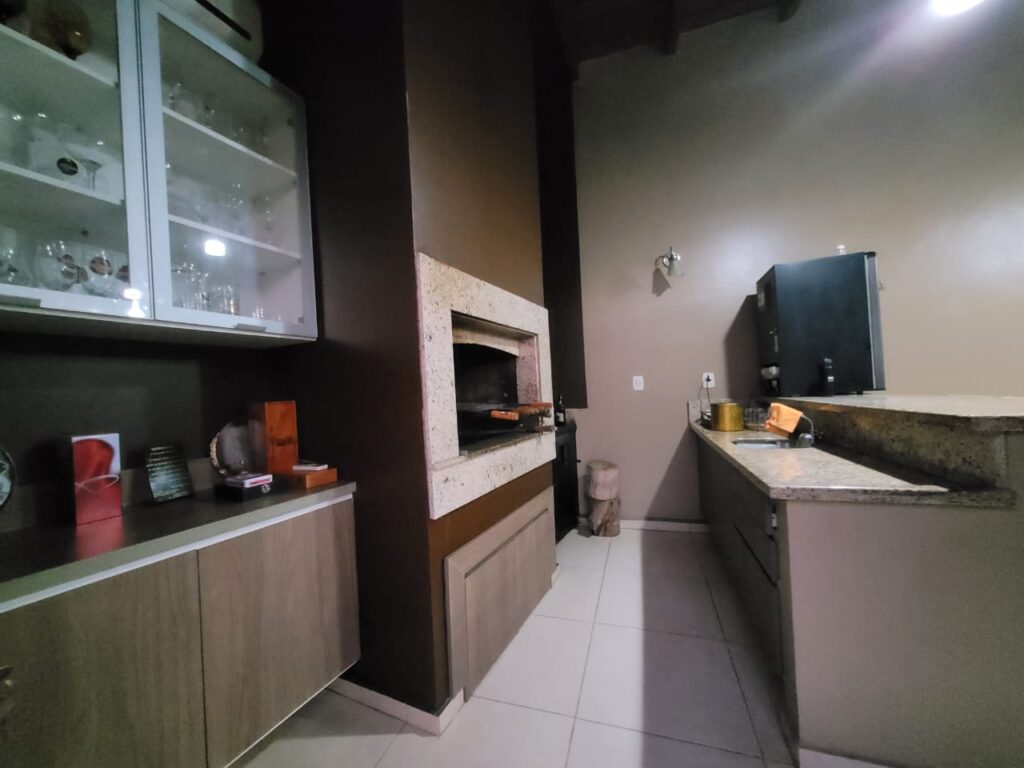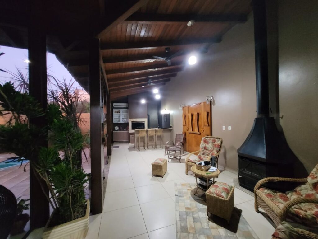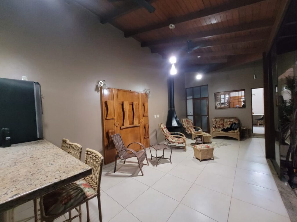 Quiosque com lareira e espaço gourmet, churrasqueira e fogão campeiro