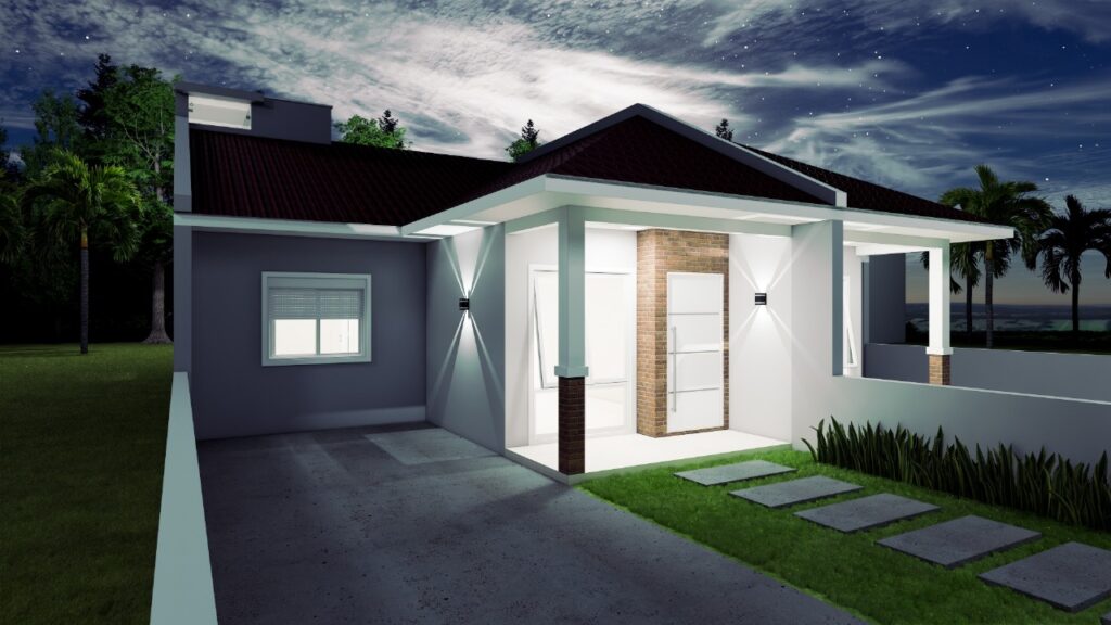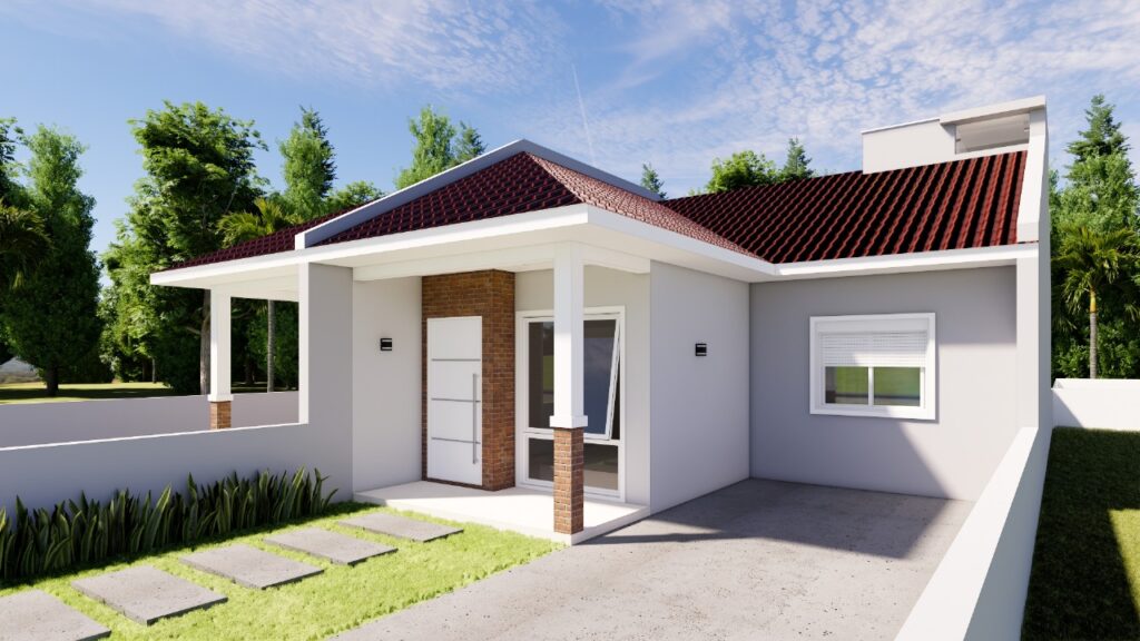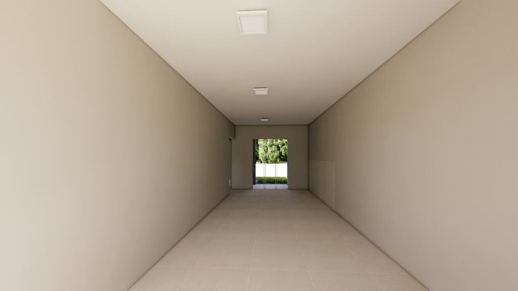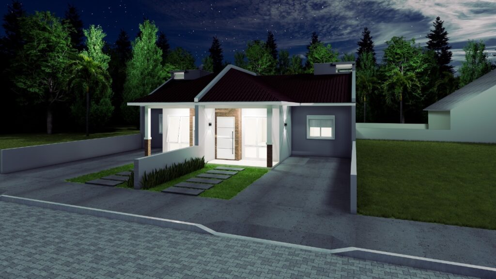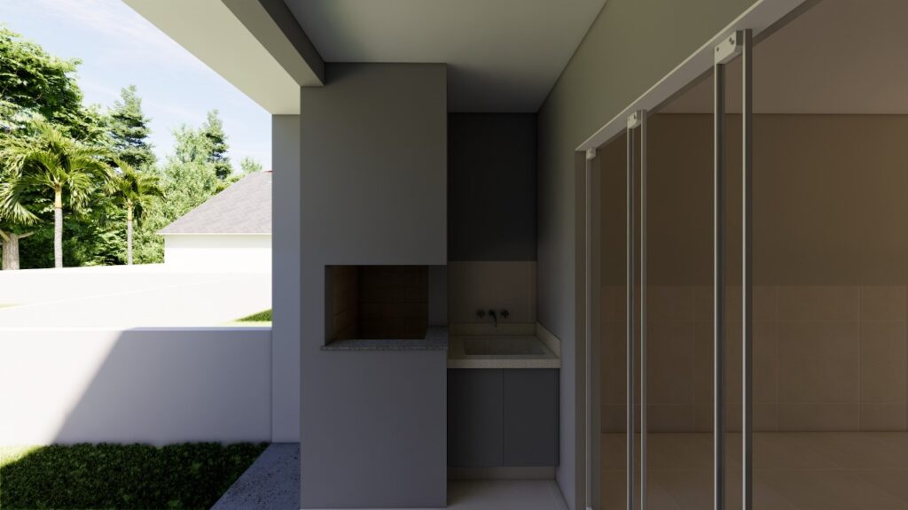 Pátio de frente com estacionamento